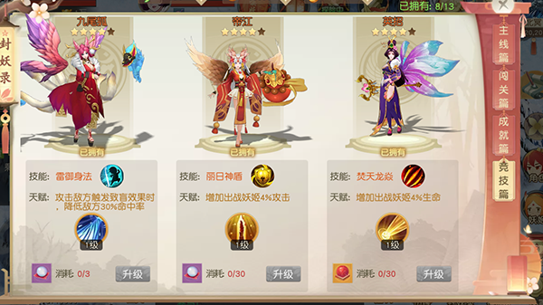 然而,技能还有稀有程度之分,还有等级之分。一个强大的妖姬,技能是强大的基础,资质是技能的放大镜。有什么比一个满资质满技能的妖姬更让人畏惧?