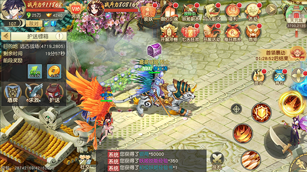 护送结束后可以获得妖姬雷神、元宝卡和角色经验,所以御妖师们一定不要忘记护送。